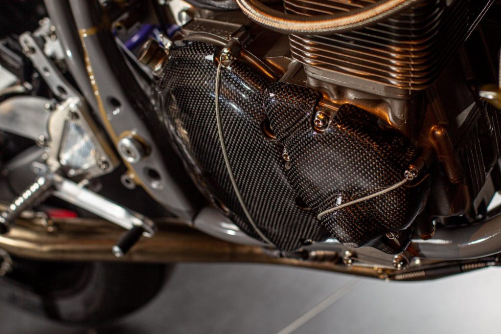 The bike comes built on the Harris F1 chassis with Suzuki 4-cylinder engine.Â