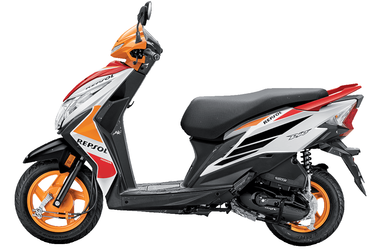 The Honda Repsol Dio edition has arrived with MotoGP Respol colours. While the performance specs remain similar to the standard Dio, we see changes in the graphics.