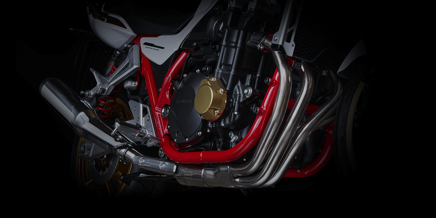In 2018, the CB1300 SUPER FOUR pursued sportier and higher quality driving by adopting a dedicated front fork. And rear suspension jointly developed with Ohlins.Â