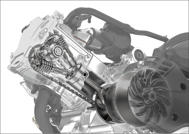 - It has achieved high output by expanding the valve area by increasing the valve mechanism to 4 valves. And increasing the intake efficiency of the air-fuel mixture and the exhaust efficiency of the combustion gas.