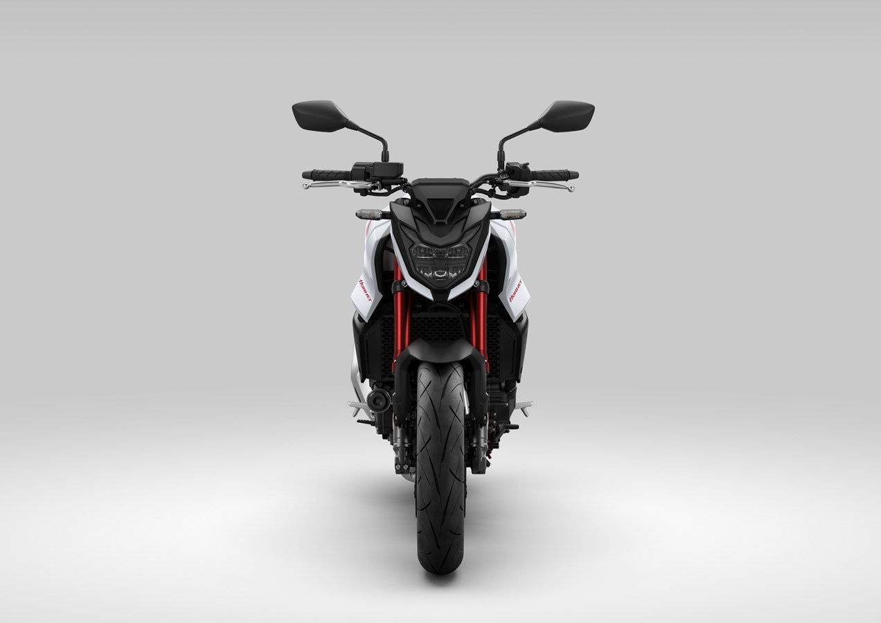 High-quality Showa suspension works through a new, lightweight steel frame with high-spec running gear that allows the rider to exploit all the potential. And minimalist look with uncompromising angles defines a sharp, modern streetfighter style.