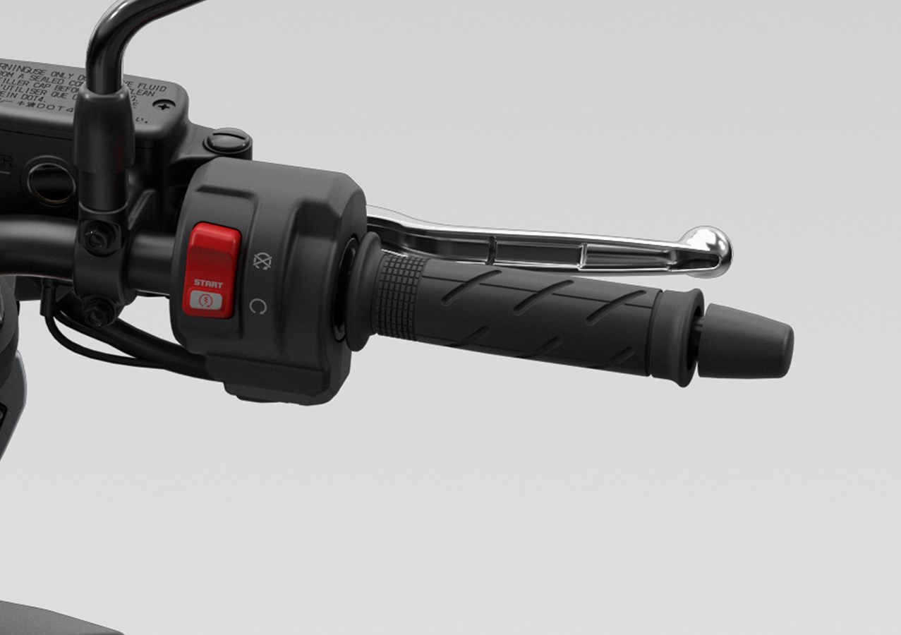 Usability, for all riders, is also inherent to the design. The seat height is 795mm, and the riding position is upright, with slightly rear-set footpegs for natural control and wide handlebars for leverage.