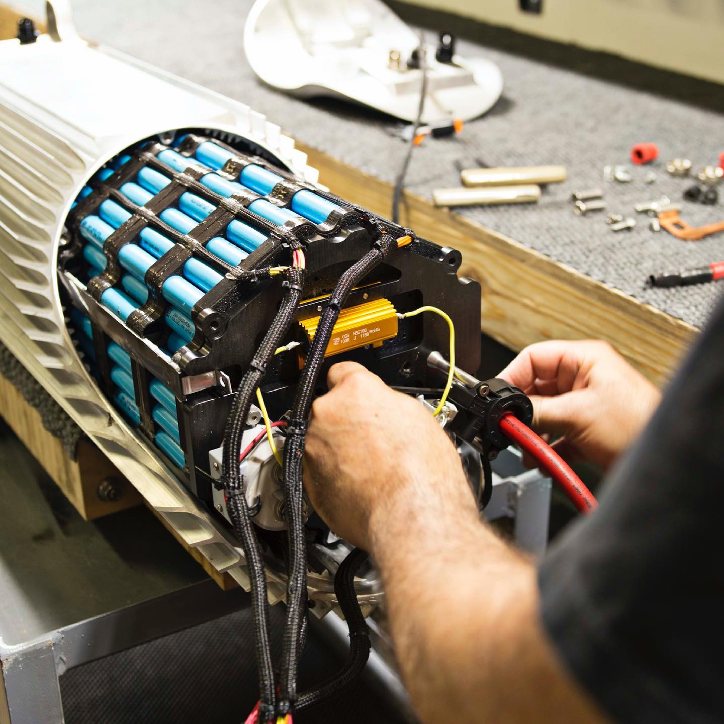 JT Nesbitt assembles the full modular immersion liquid-cooled battery pack that powers The One. Proprietary cutting edge technology exclusive to Curtiss. Best & Finest.