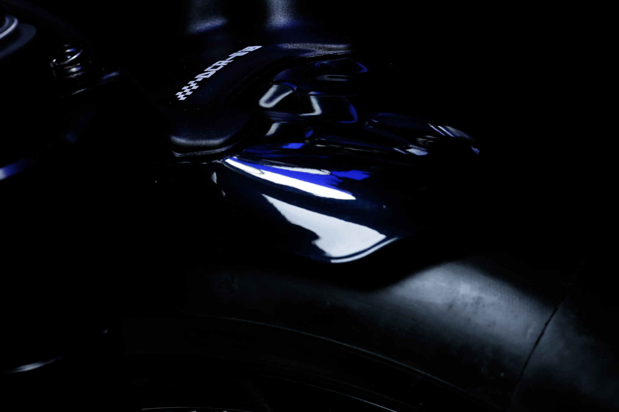 Key component of the bike’s design is the forced air intake. The intake is designed in such a way to serve as 2 hexagonal tubes, that channel the high-speed moving air to the DNA Filters, and at the same time acts as a structural part that supports the fairing windshield and double front LED lights.