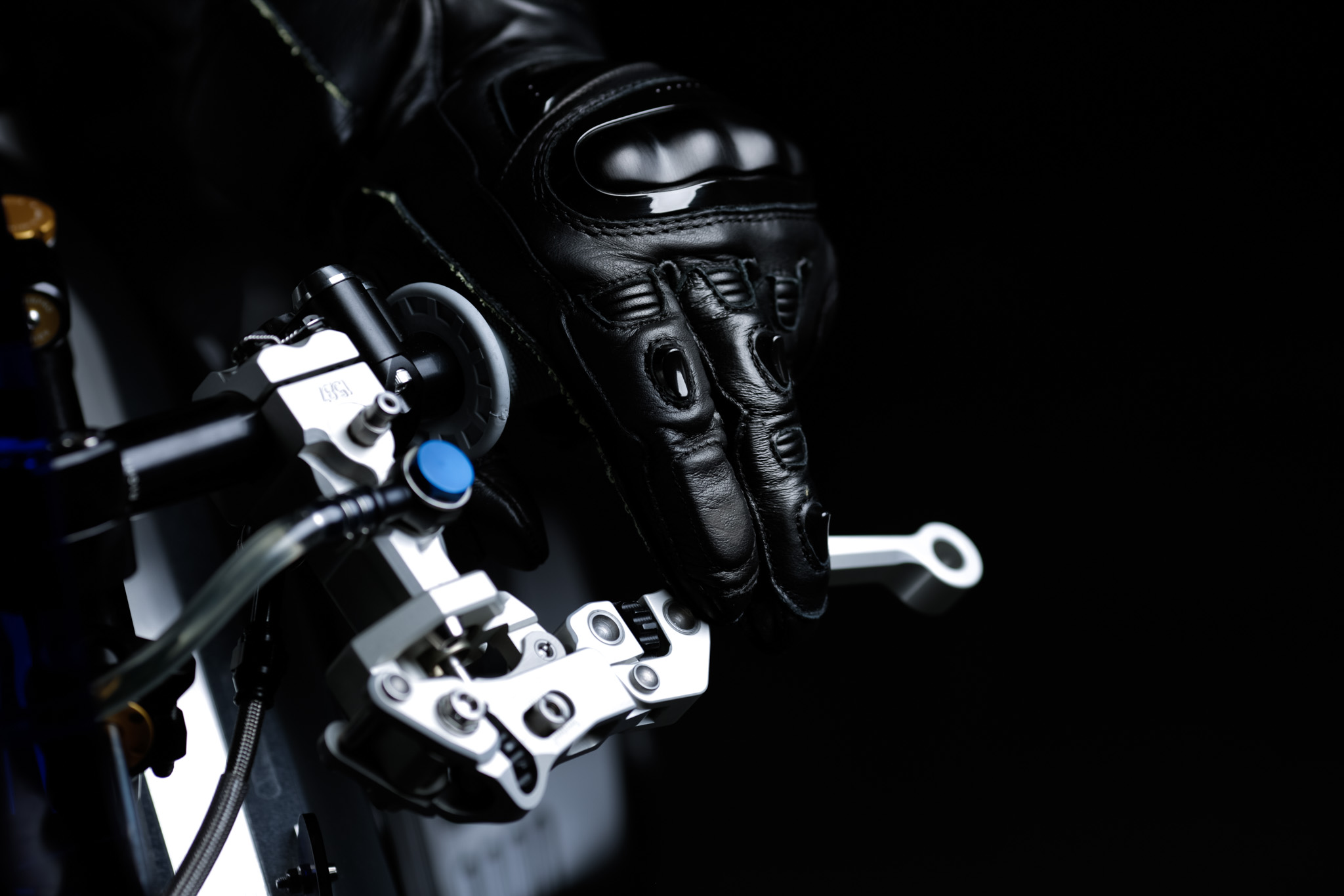 The Boxer engine has 6 gears and a dry clutch, gear shifting up is done clutch-less. A torque cell on the gear lever, custom made for the DCR-018, senses when the rider applies force to change gear and signals the ECU to cut fuel or ignition, whatever we choose, for a few milliseconds (programable) just enough to allow the next gear to slip in position.