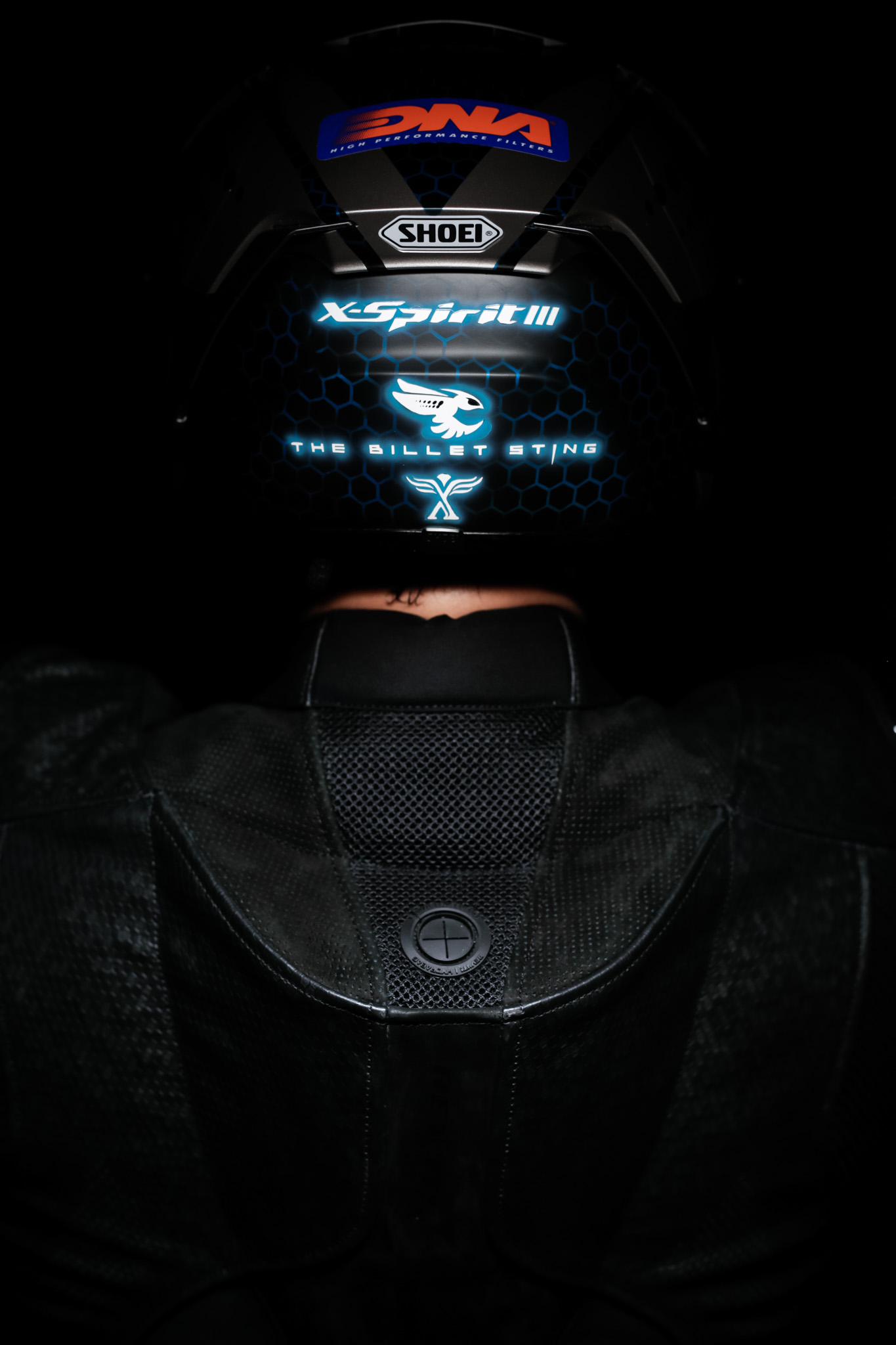 SHOEI the premium helmet manufacturer, provided the X Spirit 3 race helmet, that is also custom painted in a Honeycomb design with the Billet Sting Wasp logo on both sides.