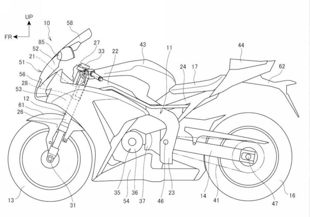 This was the patent that was filed in September 2017. The figure looks similar to the late CBR 250R. It looks probably like a drawing pattern for the time being. Here piping 80 is connected from the ram air duct (70) to the seat.