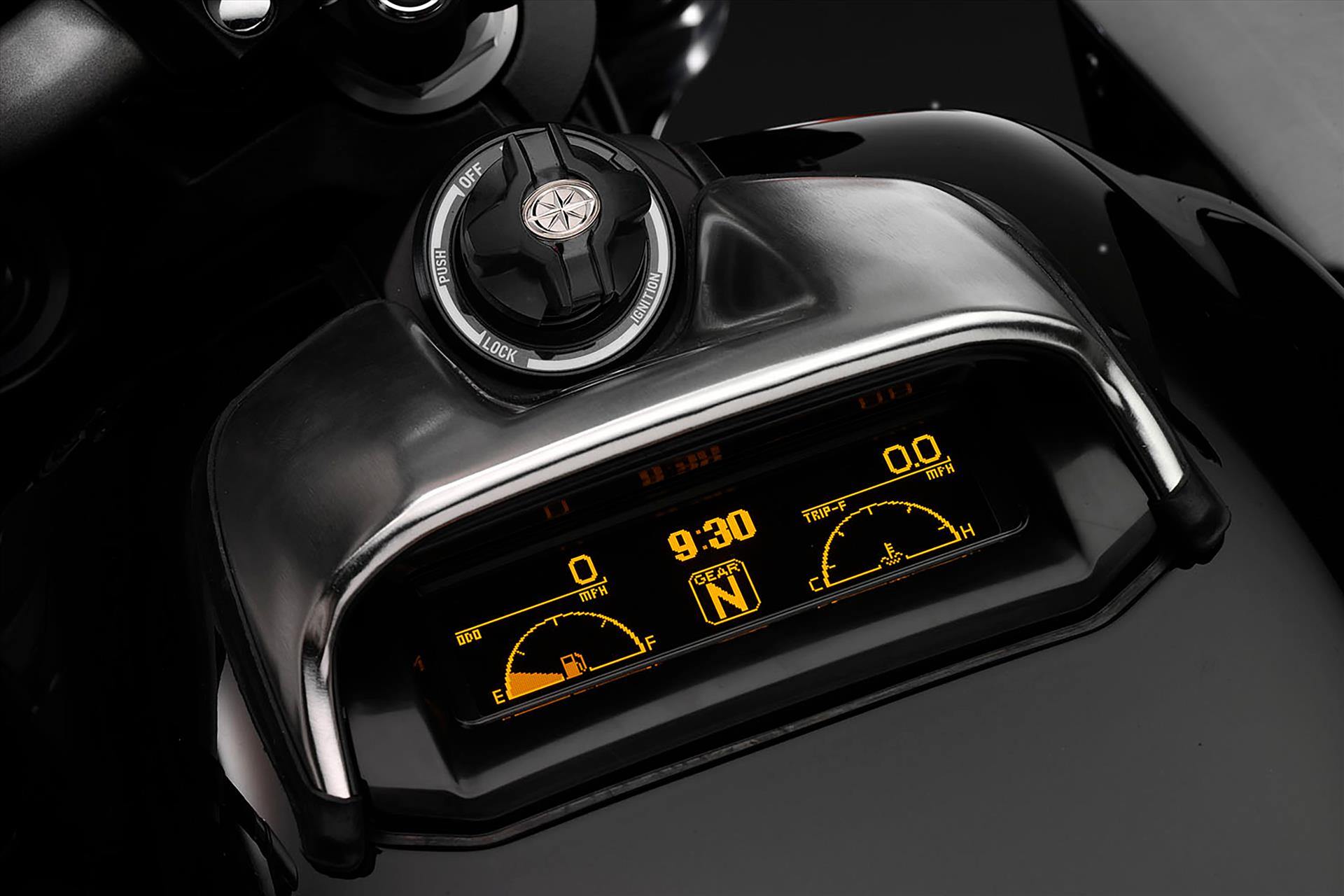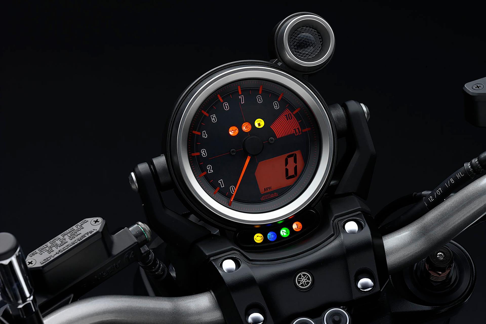 The instrument panel includes an analogue, step-motor driven tachometer, and digital speedometer with LED indicator lights.Â