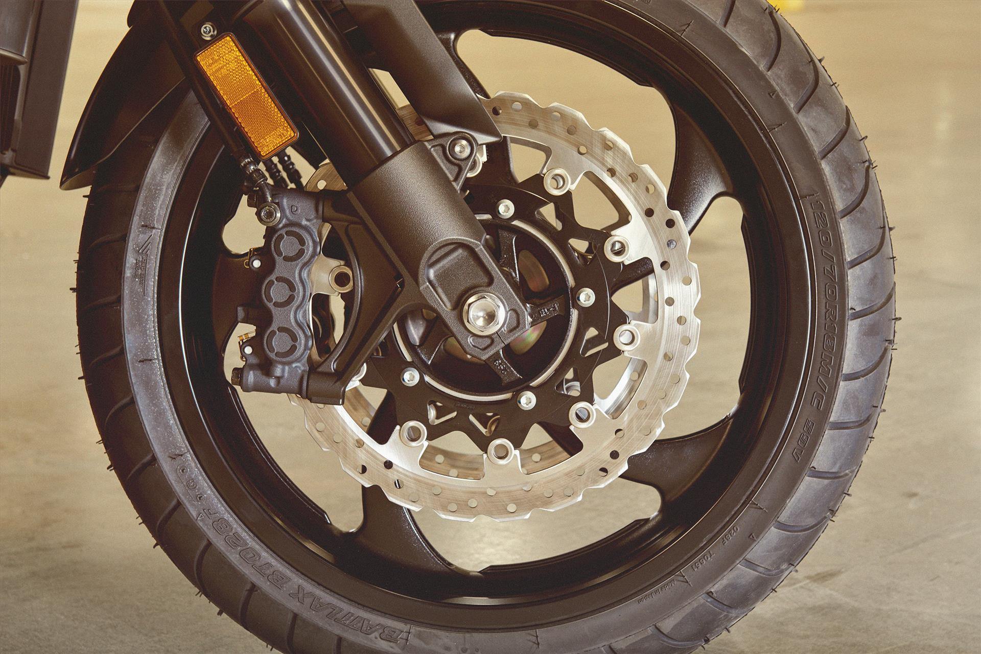 Further, the tires are 18-inch radial tires, 120/70R18 front and 200/50R18 rear. Are mounted on cast aluminium five-spoke wheels.