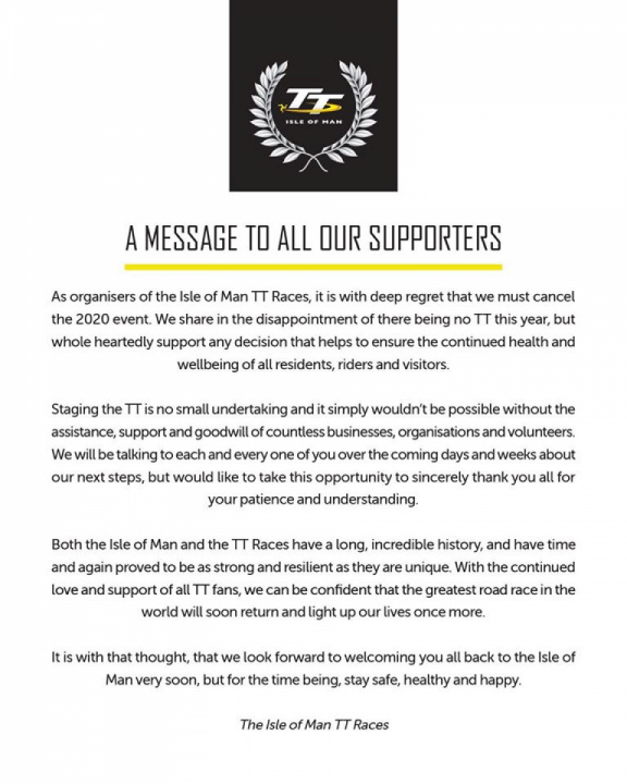 Isle of Man TT Races has issued a statement through its official social media channels.