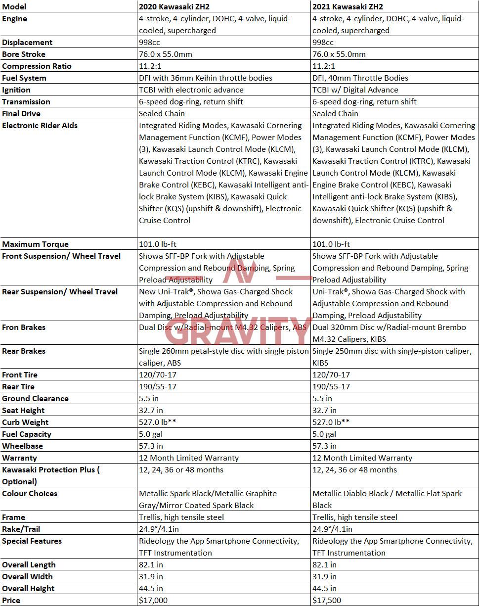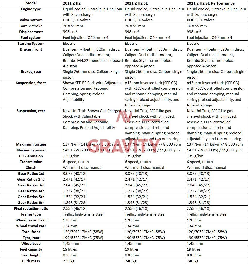 We only see few changes among the 2020 Z H2 and the 2021 Z H2.