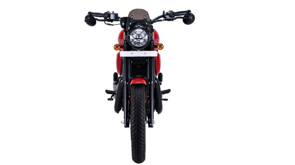 Like the stereo struts, new muffler, new fork as well as new motor. The aesthetics come with unique black headlight grille and handlebar. Further to enhance the retro aggressive look, the new Jawa 42 comes with bar-end black mirrors with black rims and tubeless tires.