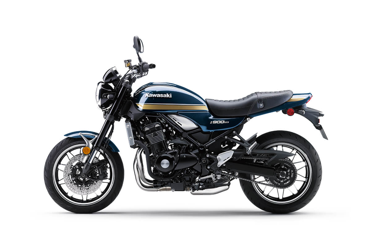 The 2022 Z900 RS gets a colour scheme inspired by the 1975 Z1, called”blue jewel beetle”. The new Z900 RS now wears a Candy Tone Blue base and gold stripes on its tank.