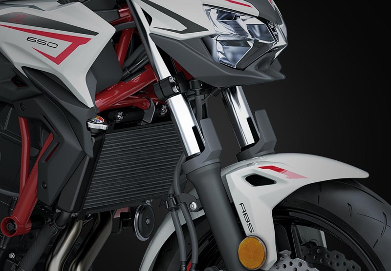 It is powered by a 649 cc twin-cylinder liquid-cooled DOHC engine installed in a steel trellis frame.