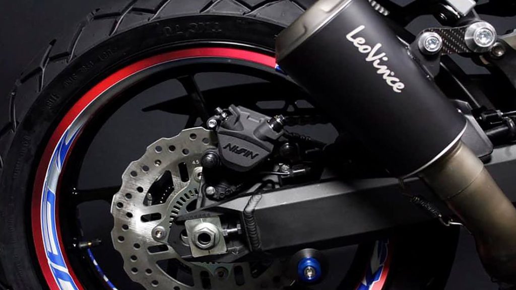 - The fairing circumference was extended with the help of the front spoil the Leovince exhaust system did standard exhaust replacement stem with a carbon holder.