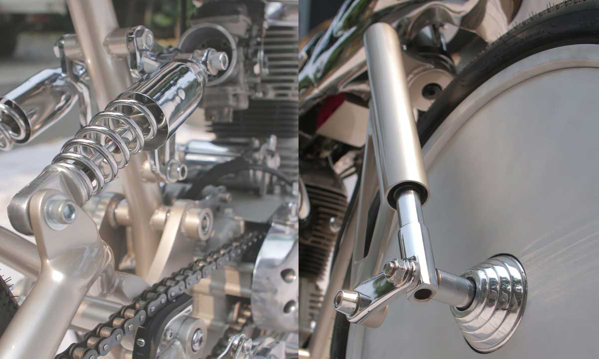 The motor comes with the five-speed transmission, and remarkably the force exerted by the engine is directed by the final drive chain.