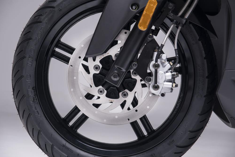 The model has a dual-channel ABS braking system with two-piston callipers of 260 mm disc brakes in the front and 240 mm disc brakes at the rear.Â