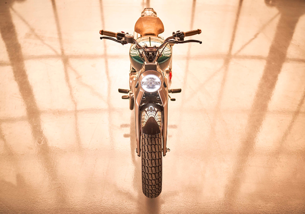 Their are very minute details which the designers have very closely worked upon like BRAAP mentioned at the back of leather seat, twin exhausts gets a squarish finish, bottled green paint scheme looks decent on the concept, retro style buttons they also go very well with the entire line of the concept.