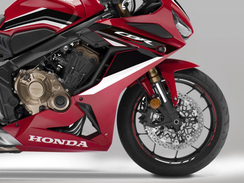 And the CBR650R arrives in Grand Prix Red and Mat Gunpowder Black Metallic.