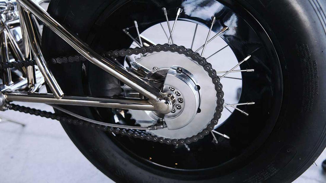 On this particular custom, we get to see two motors. The toothed belt connects these two motors, and the transmission of the power takes via the clutch.