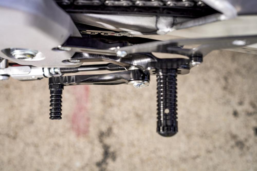 Plus there are more details stacked in the billet aluminium which makes the bike lighter by reducing the weight. In multiple components like the engine crankcase guard, the brake lever guard and the adjustable footrests.