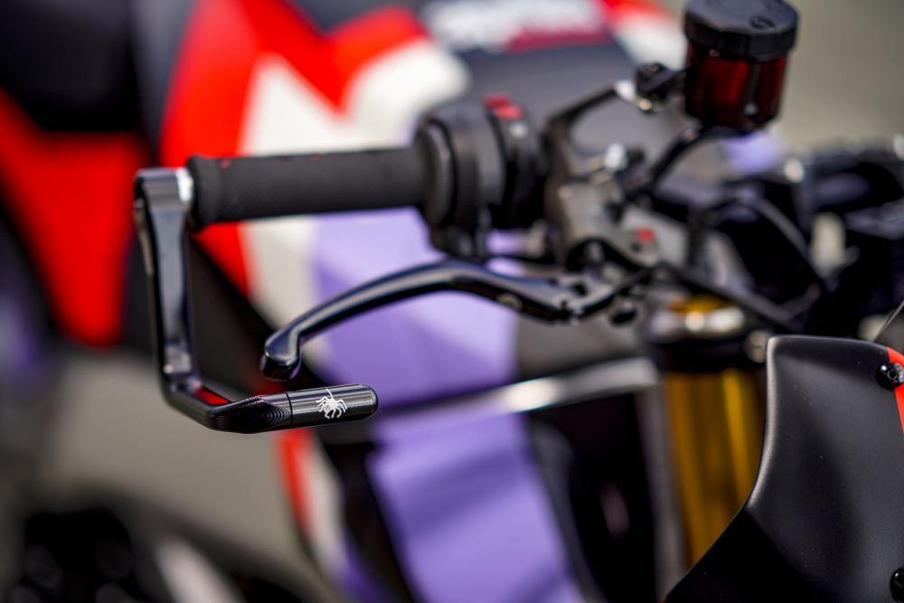 And one example is the similar usage of carbon fibre material loaned from GP bikes into the Tuono 4X.