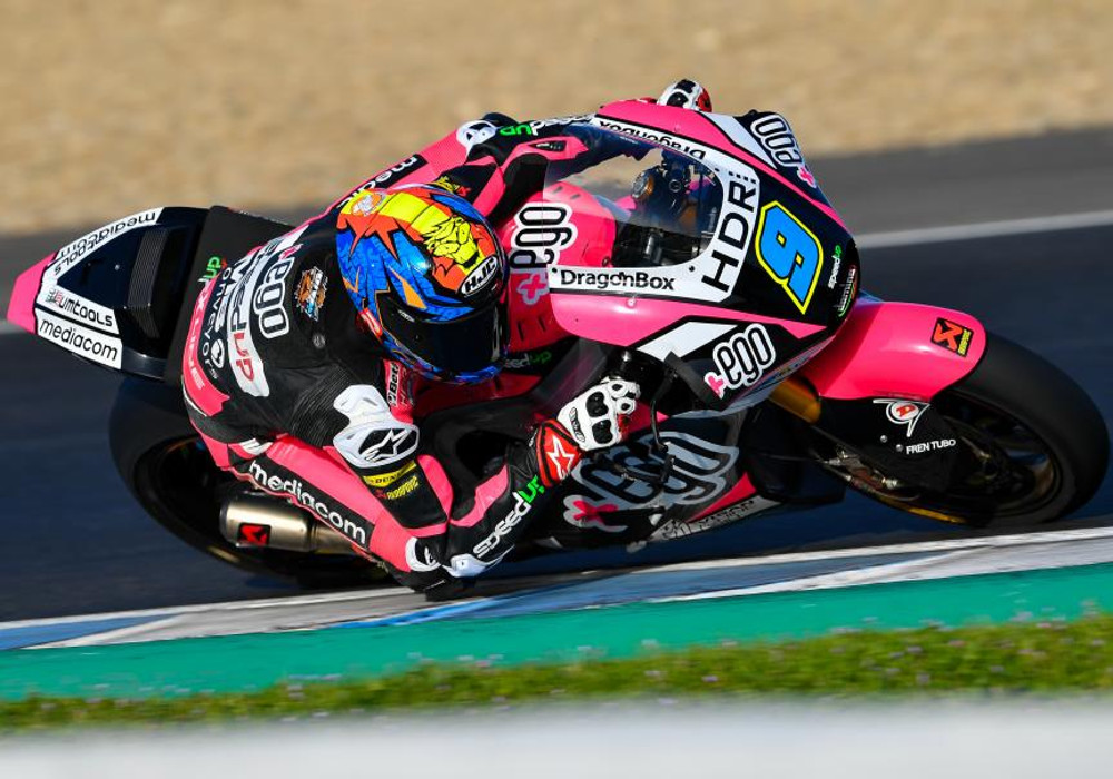 Circuito de Jerez starts positive for Jorge Navarro for Moto 2 to leave behind the Triumph liveries on Froday morning .The climax was too good with 21 riders within a range of second each.However Jorge Navarro was fast by 0.019 seconds to get past Binder, with Jorge Martin with his KTM third.