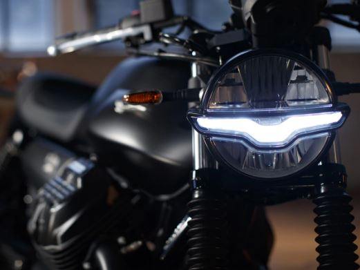 Moto Guzzi V7 Stone has the new, full LED light system with the headlight that includes a DRL in the shape of the Moto Guzzi Eagle.