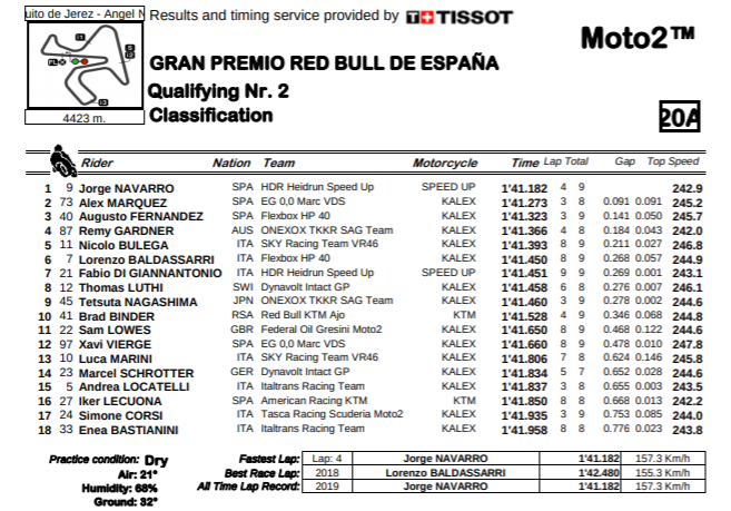 Fabio broke both the lap record with inside 1:36.880 that was the also the previous fastest ever lap on the track. While Morbidelli and Marque stood 2nd and 3rd at pole position with lap timings of 1:36.962 and 1:36.970 respectively.