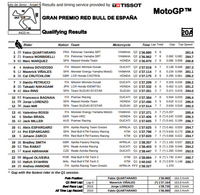 Jerez is giving surprises after surprises with yesterdays pole position being taken by youngest 20 year old Frenchmen, Fabio Quartararo accompanied with his bike Petronas Yamaha SRT.