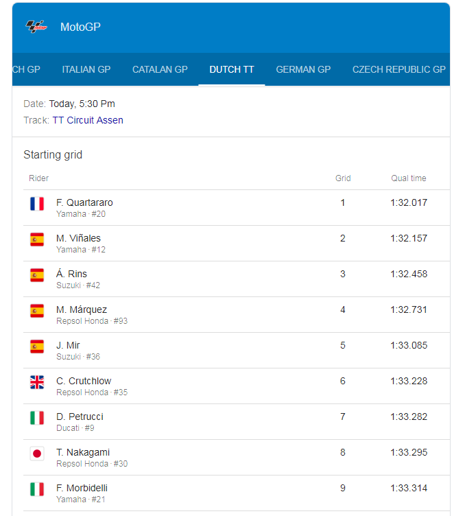 MotoGP Qualifying Standing at Assen