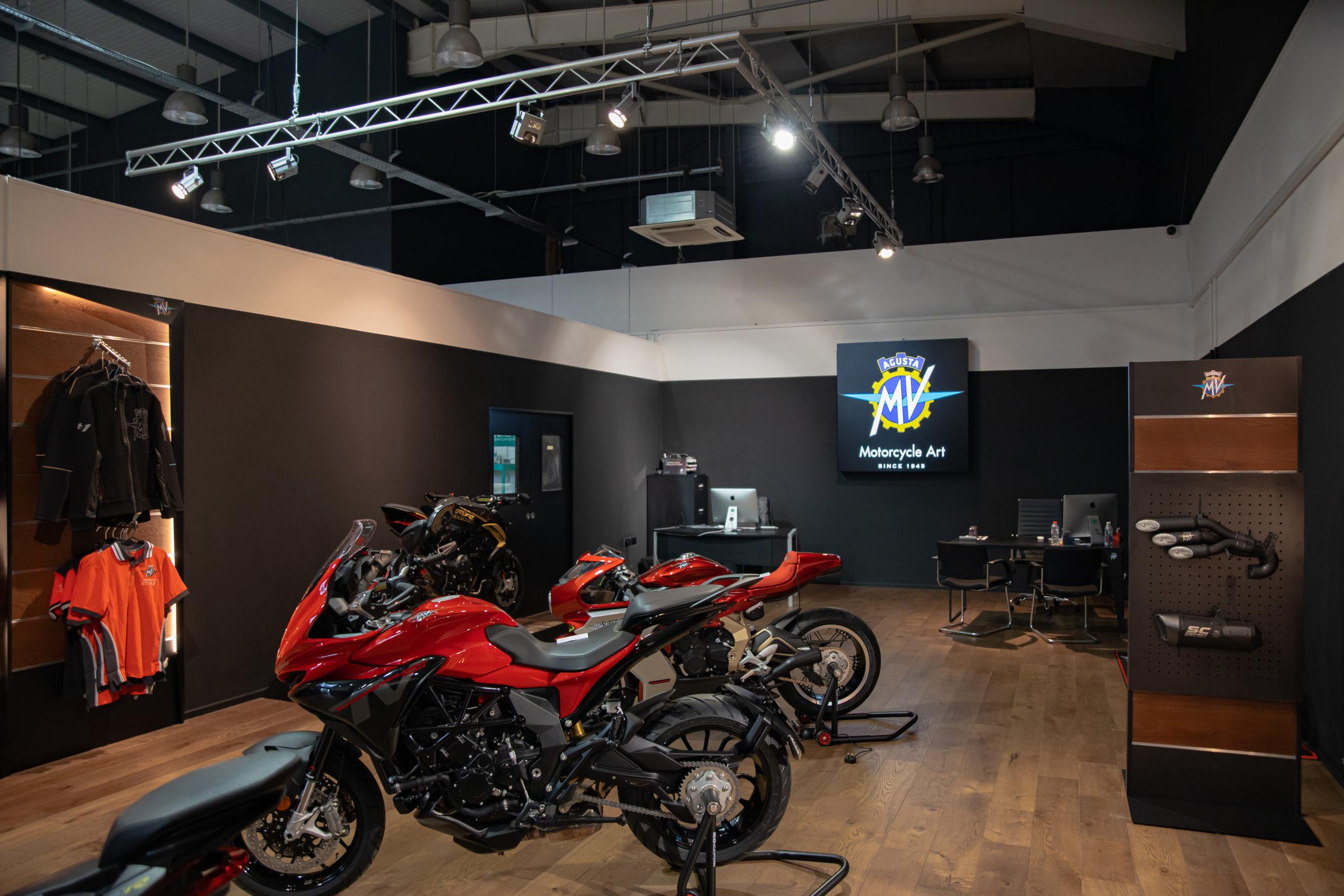 Oak flooring, matte black walls paired with bespoke Italian-made, MV Agusta-branded furniture: DMC Moto, MV Agusta’s new official store in Birmingham, has made every effort to create the perfect dealership and become the reference point for MV Agusta owners in the Midlands.