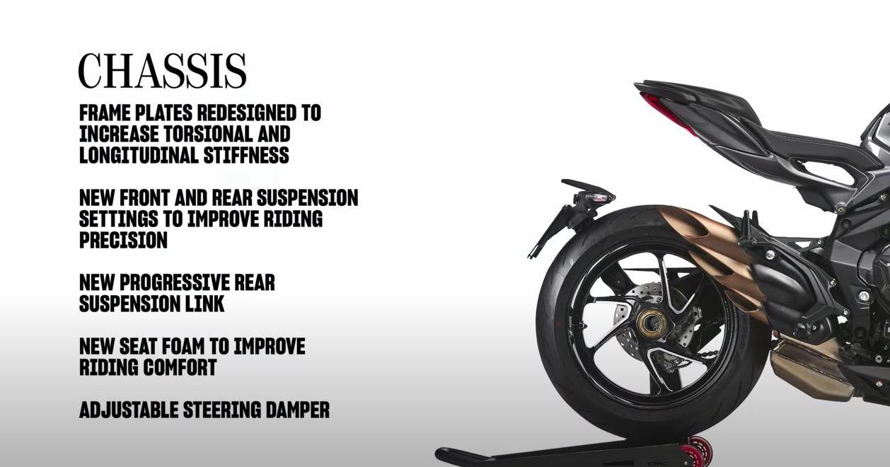 MV Agusta has introduced the new chassis for the torsion and the longitudinal stiffness of the bike. It is allowing the bike to be more precise. To get precisely the front tire to be where it has to be whether on the road or the track.