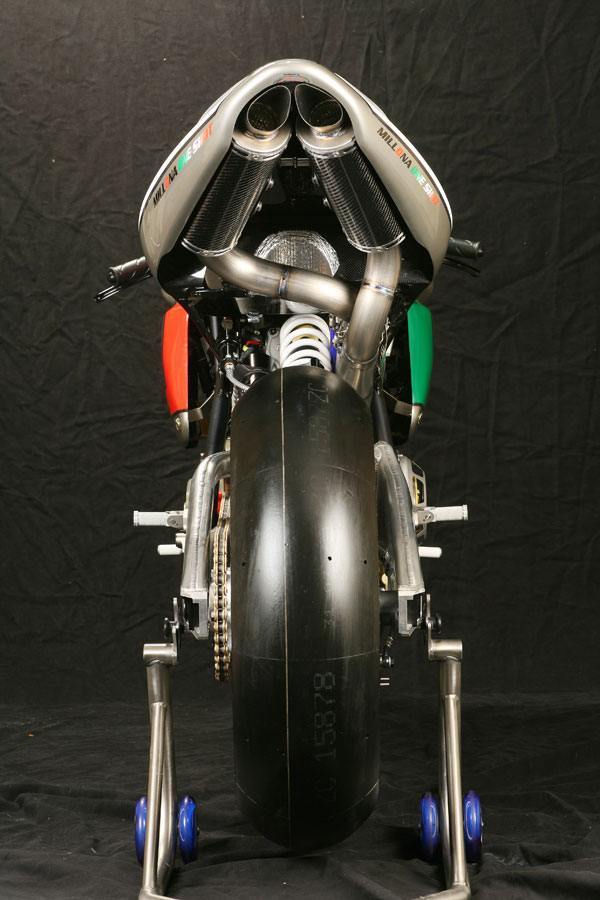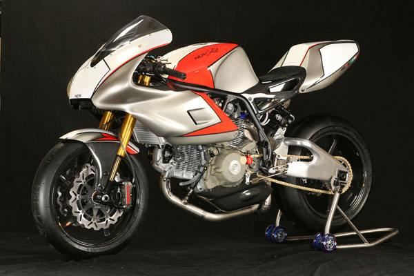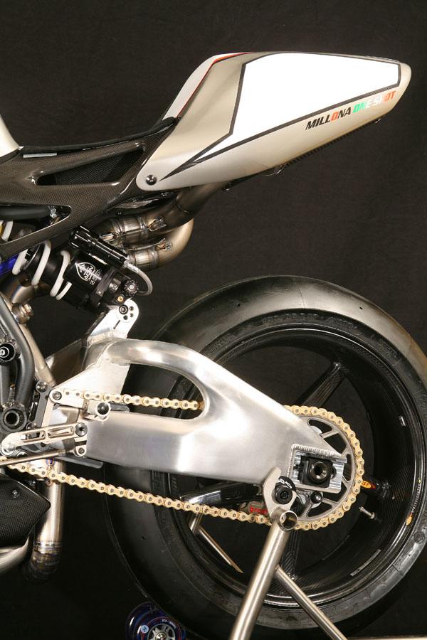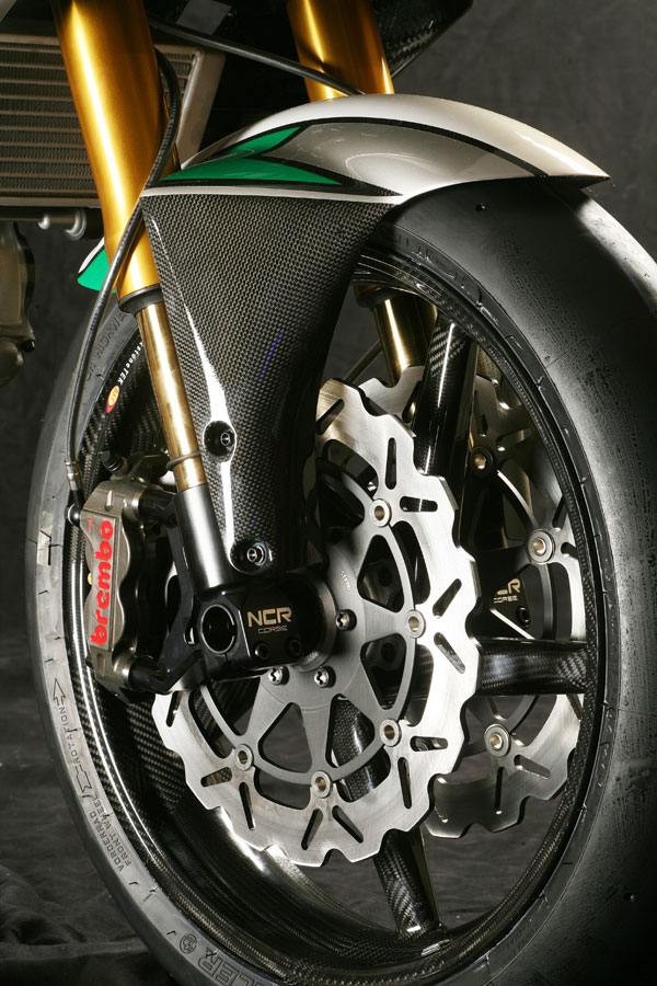 Aldo Drudi provided the design of the bike. The aluminium rear swingarm is also completely hand-built by NCR.