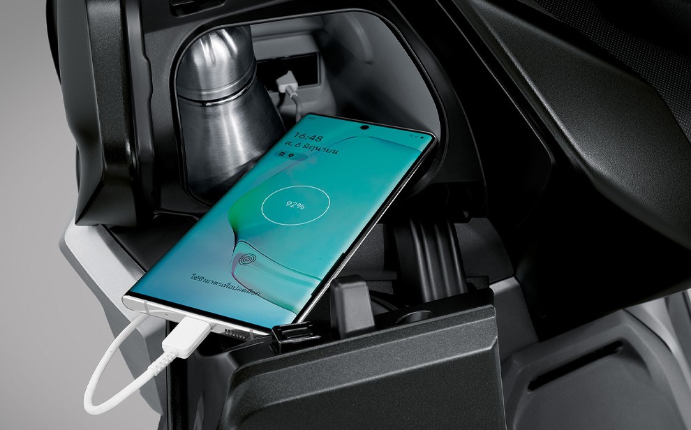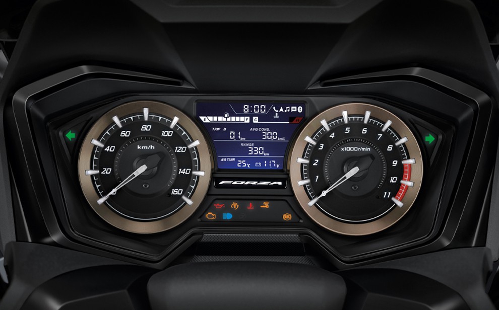 The new 2022 Honda Forza arrives with a 330 cc, four valves code eSP + motor that helps more reliable combustion.