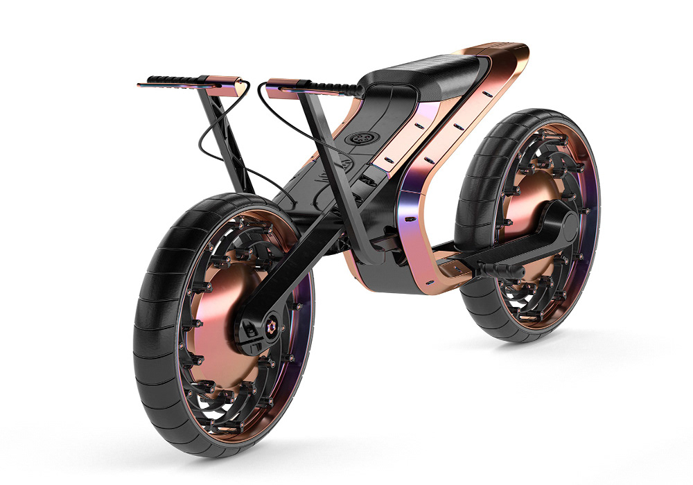 From the design it looks like fusion of motorcycle bike with a exercise bike now why i am saying is just look at my point no 10.It also looks like Metal infused with carbon-fiber from the paint scheme.