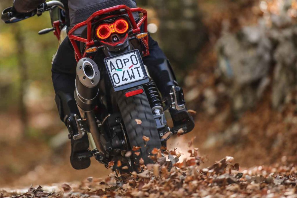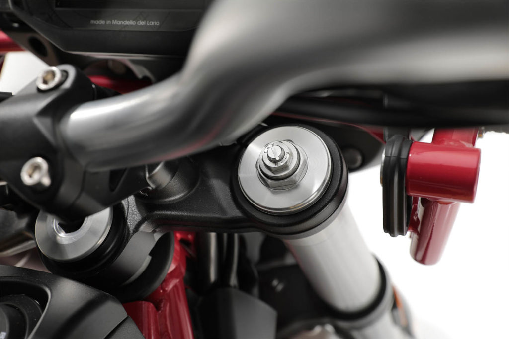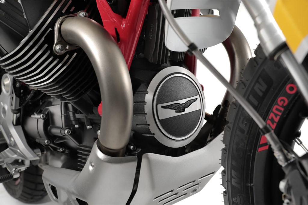 Guzzi engineers made another remarkable achievement by reducing the longitudinal development of the new small block engine that allowed very long swingarm, for safe and intuitive riding.