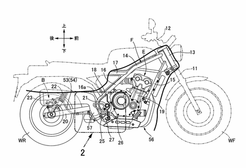 • Different types of seats. The Scrambler patent has flat seat for rider and pillion whereas 2020 Rebel 500 has a step seat.