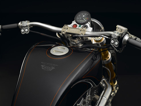 Bodywork: Handcrafted carbon fiber (headlight, fenders, tank, tail section,tach shroud & seat pans); any color