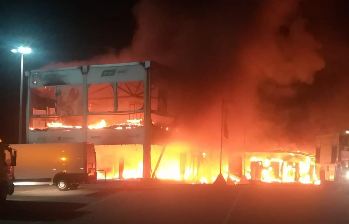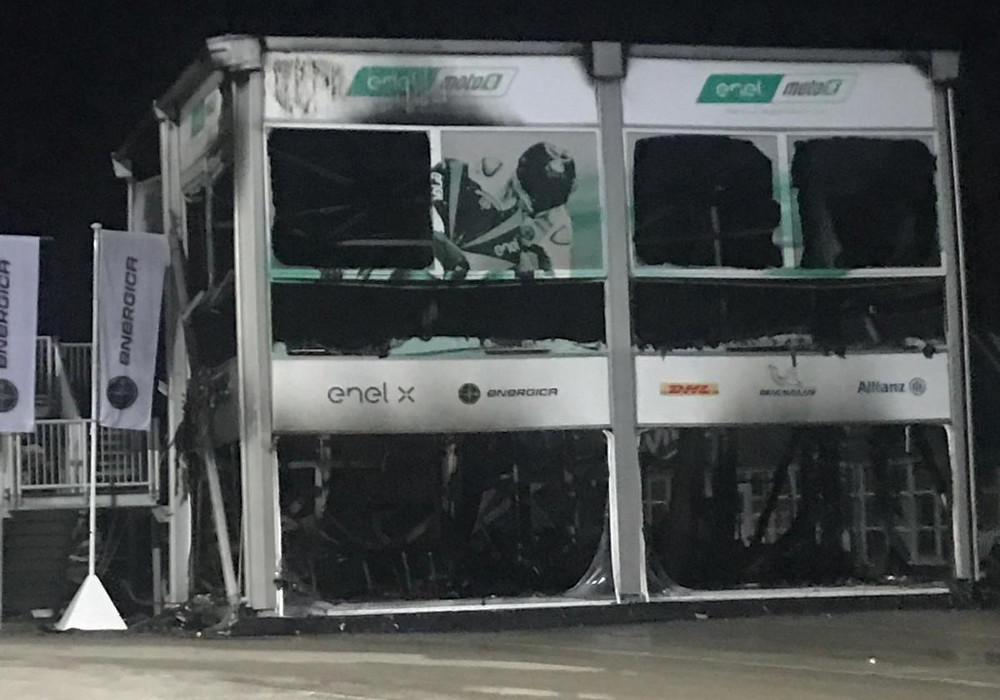 MotoGP said in an explanation that the MotoE World Cup  office burst into flames at around 0015, causing significant harm and consuming “most of material”.