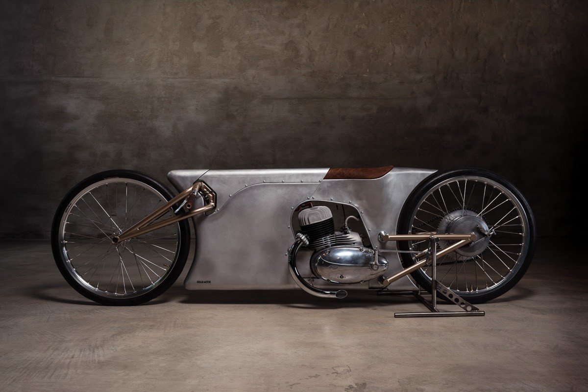 Weighing just 90 kgs this thin speedster is supported by a two-cylinder, two-stroke motor from a 1964 Jawa 350 and a hand crafted frame. The entire assembly is joined with limited 23-inch smooth tires and truth be told, not many explicitly conveyed connection parts. KRT Framework are venture accomplices for the creation of the body and wacky fork development. This Czech twin engine produces power of 18 hp.