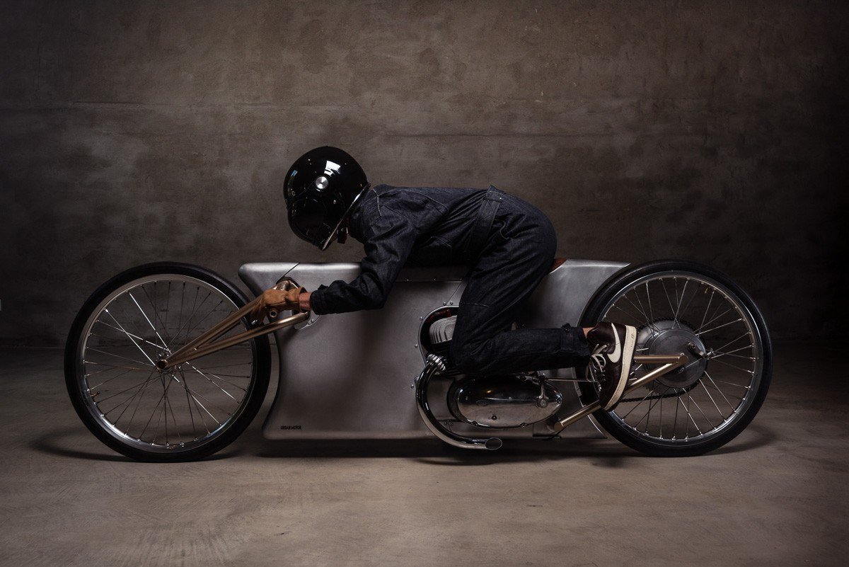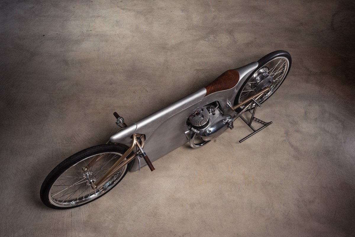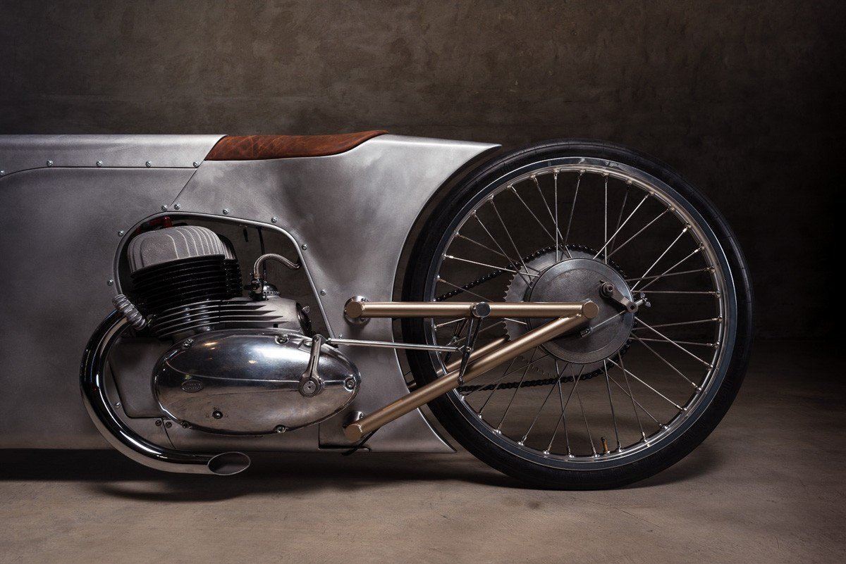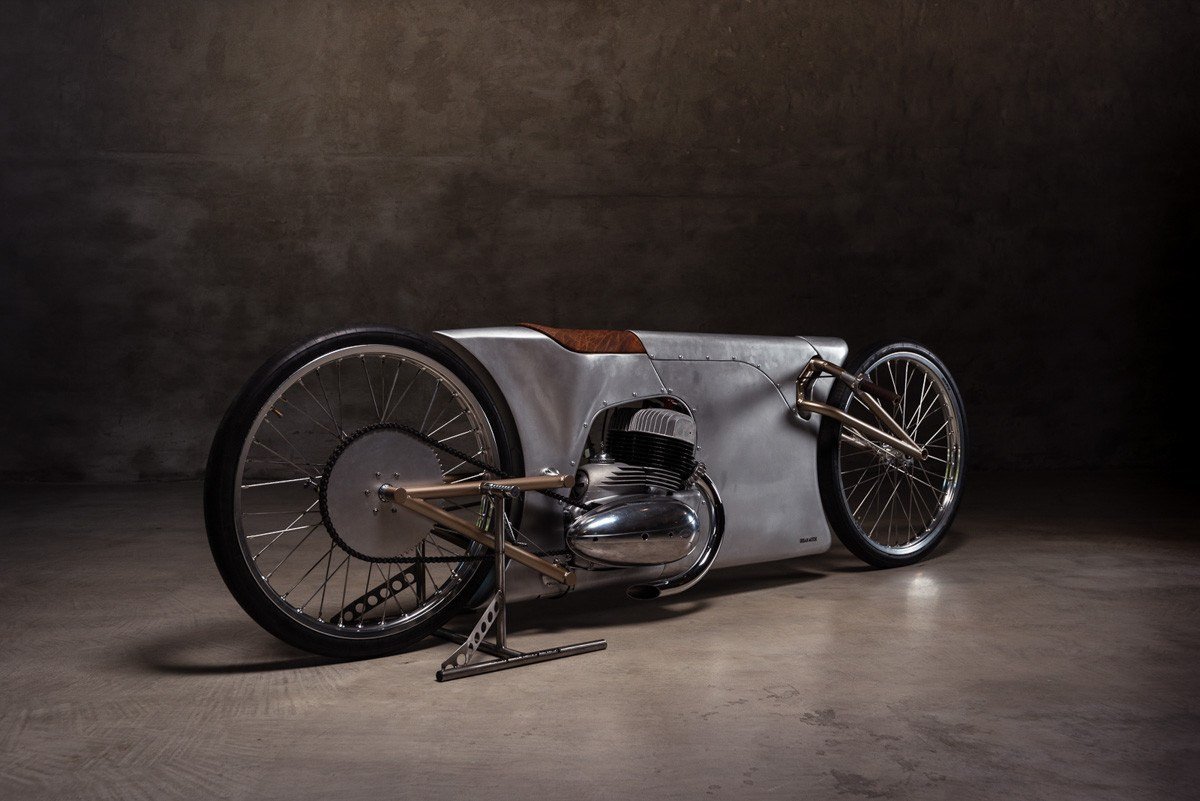 Weighing just 90 kgs this thin speedster is supported by a two-cylinder, two-stroke motor from a 1964 Jawa 350 and a hand crafted frame. The entire assembly is joined with limited 23-inch smooth tires and truth be told, not many explicitly conveyed connection parts. KRT Framework are venture accomplices for the creation of the body and wacky fork development. This Czech twin engine produces power of 18 hp.