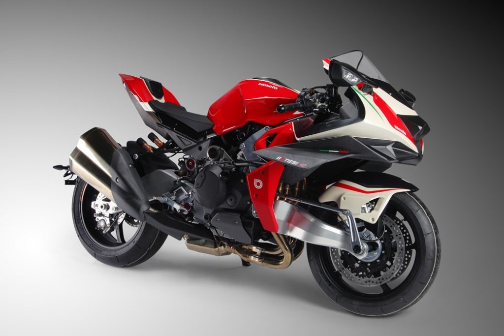 We have not heard that as of now that Bimota will come with the self-healing paint scheme for Tesi H2. But what our creative team would like to propose is the Ninja H2 Carbon fiber paint scheme that essentially is ‘ Mirror Coated Matte Spark Black ‘ on new Bimota Testi H2 and that does effectively change the way we look at two-tone traditional red and white paint scheme on Tesi H2.