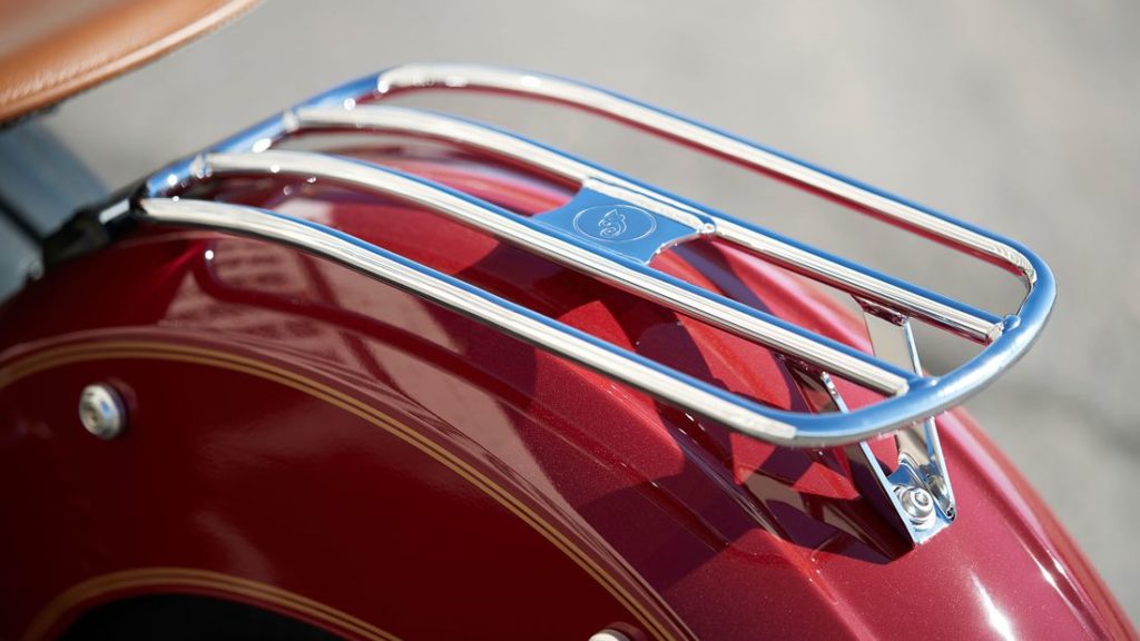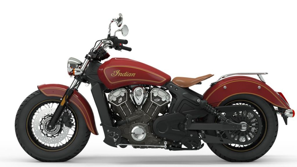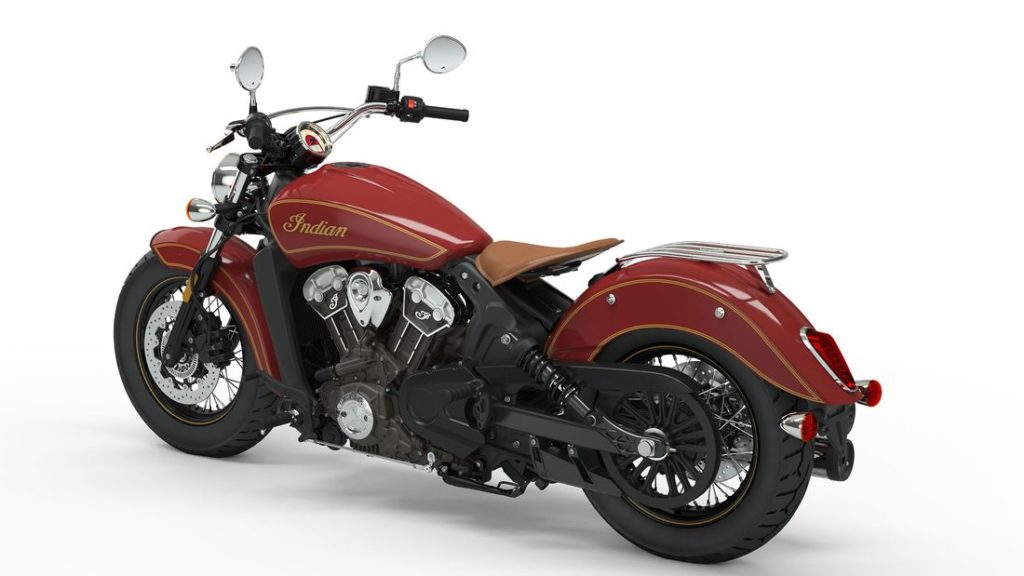 This special edition Scout comes with a “Indian Motorcycle Red” paint scheme with a decoration of gold.Plus it gets a single seat that is made of leather having a Desert Tan color.It also gets black rims, the relaxed beach handlerbar and luggage carriers.