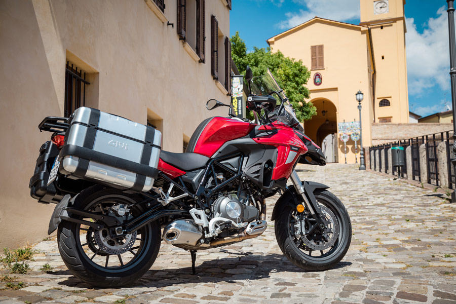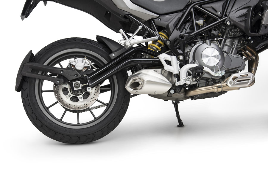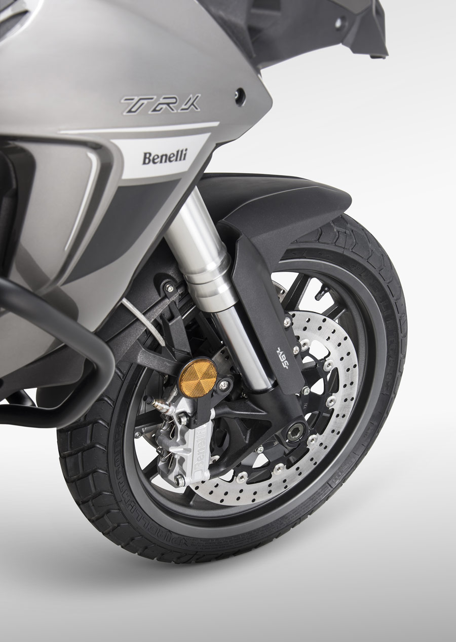 Soundness, security and exactness are the watchwords of this new Benelli TRK 502. Showing this is the braking execution, on account of the two front plates, 320 mm in distance across, and 4-cylinder skimming caliper and Abs. The back circle is 260 mm in measurement, and is grasped by a solitary cylinder caliper. The wheels are 17″ and produced using aluminum combination. 120/70-17 and 160/60-17 tires are mounted to finish this astounding bundle.