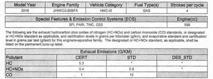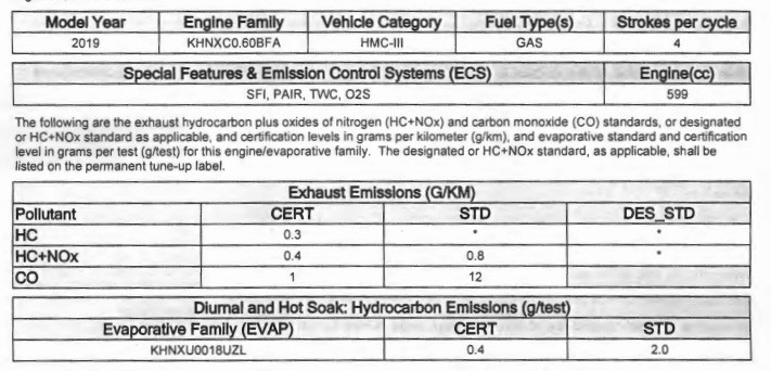 Documents of CARB of 2018 model here. This is a 2019 model. The valve of exhaust gas is the same. So there is no change other than color. That’s how it feels like the 2019 model in the USAbout New Engine