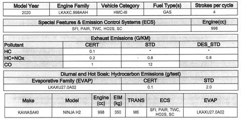 We dont expect the Ninja H2 to have any major changes either apart from the paint scheme as the CARB document of 2019 when compared with 2020 doesnt show any change.