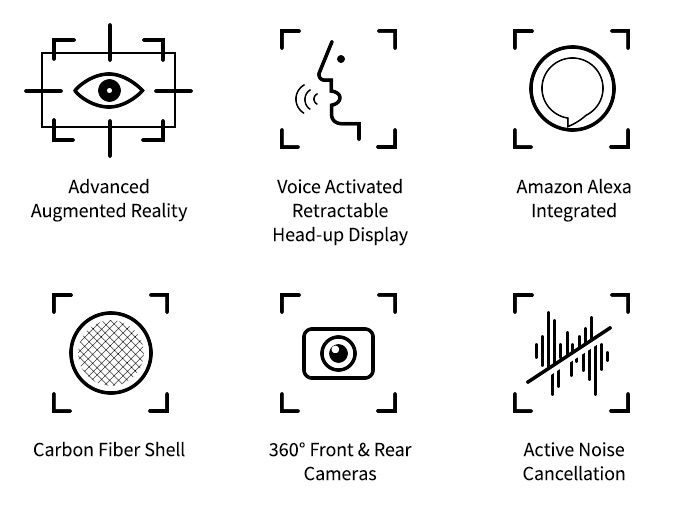 The X-AR helmet has the ability to display directions, and notify the wearer of traffic and weather conditions, indicators, speed, hazard road signs and incoming caller IDs on the HUD. It even shows 2K rear-view images so the rider has 360° visibility while on the road.