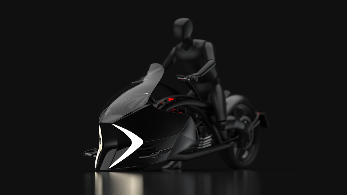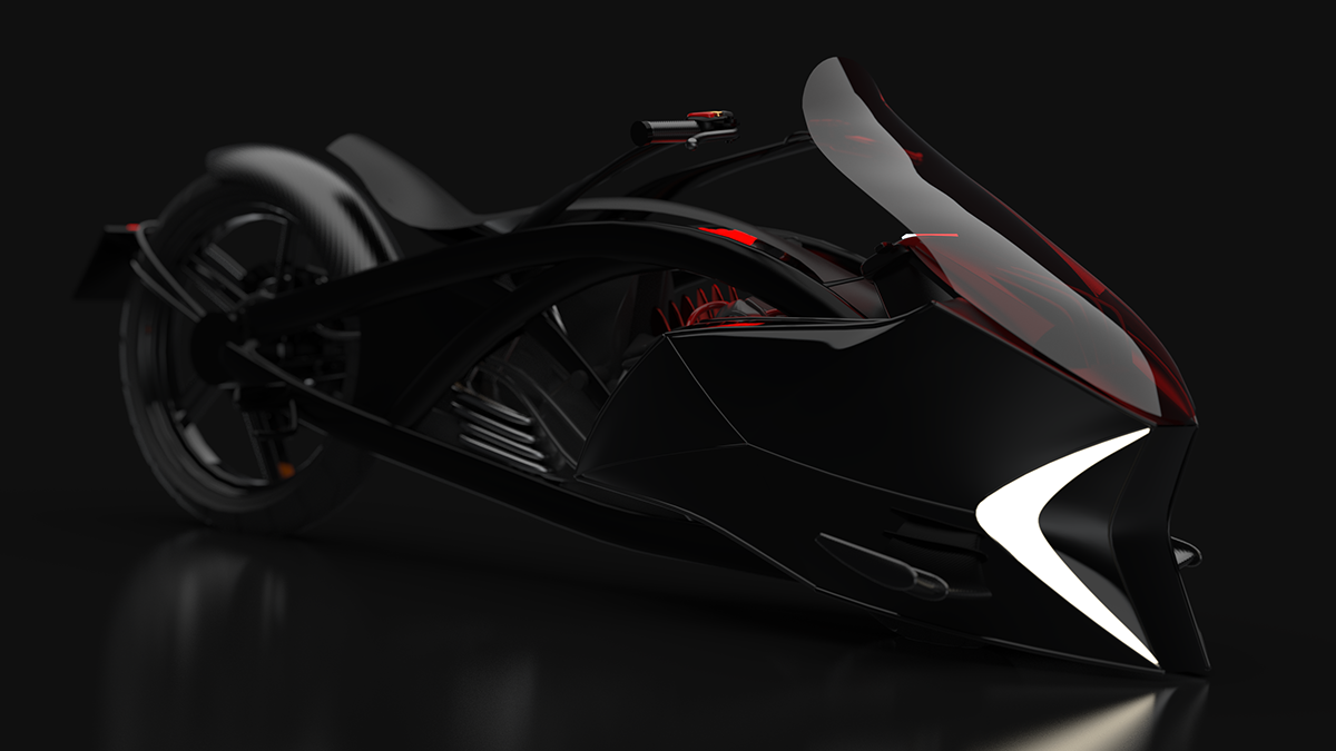 The concept has two main colors involved in it red and black which does a good justice with front having little white.The design is futuristic as the rider will have to lean to ride the bike.