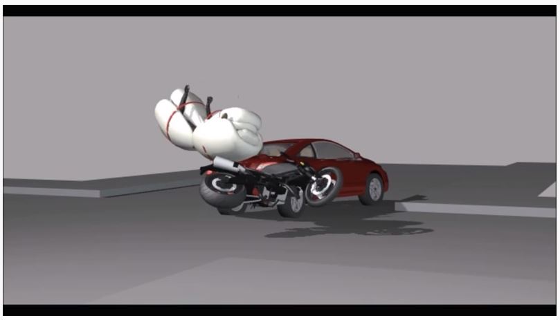 They have stated that the air bag will only work when the car is moving at certain speed and then all the censors of the car for eg: Gyro or IMU can bring the cars speed down.Front collison speeding up suddenly hit by the rear or losing the balance that is beyond the control of the rider.